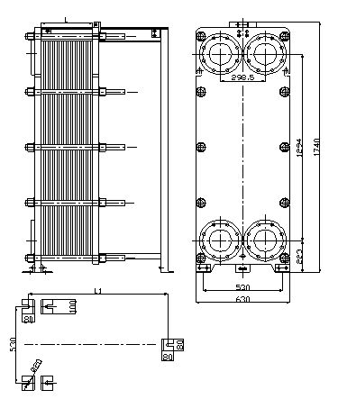 MB15型板式冷却器外形尺寸: